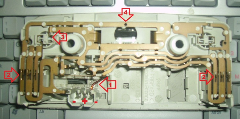. Вследствие на което светеха само крайните крушки и то единствено при натискане на бутоните. Междувременно обаче ми попадна това мини LED прожекторче, което може да се върти в различни посоки. Първоначално кабелчето му излизаше отзад, но аз го преработих до този му вид:След някои замервания с мултицета направих следното: