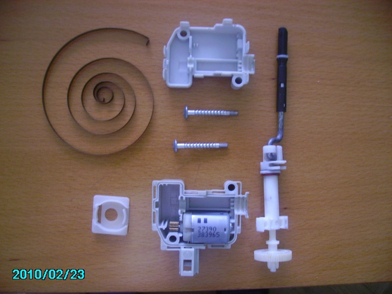 При мен той беше останал в прибрано положение и капачето не можеше да се заключи. След като го разглобих се оказа, че навитата пластинка, която трябва да го връща в изходящо положение е изкочила. Освен това зъбното колелце бе леко поизносено и имаше нужда от смазване.