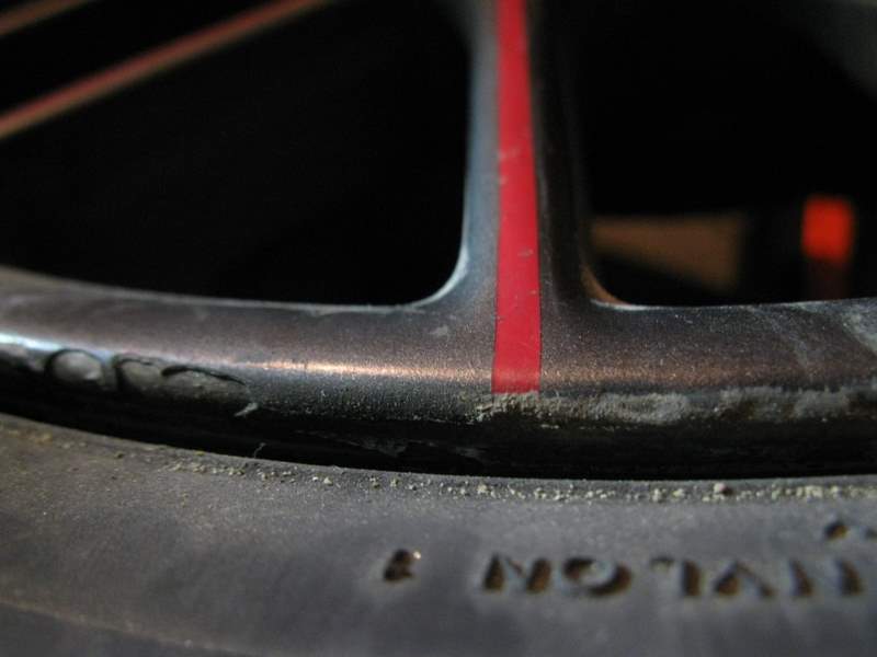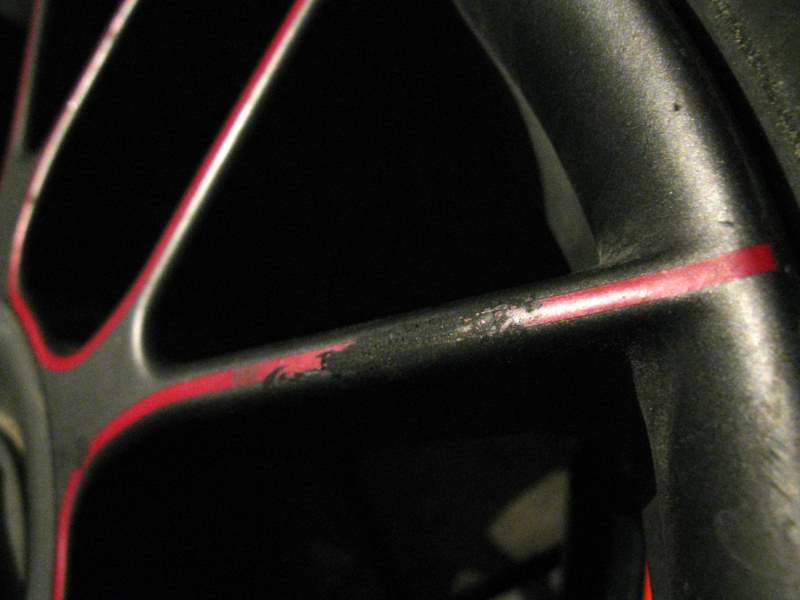 Точно така - този ефект може да се постигне със самозалепваща гъвкава лента за мотоциклетни джанти. Полага се подобно на коректорна лента, т.е. има си специално устройство. Друг е въпросът, че джантите на снимката са боядисани с червен маркер и изглеждат ужасно.