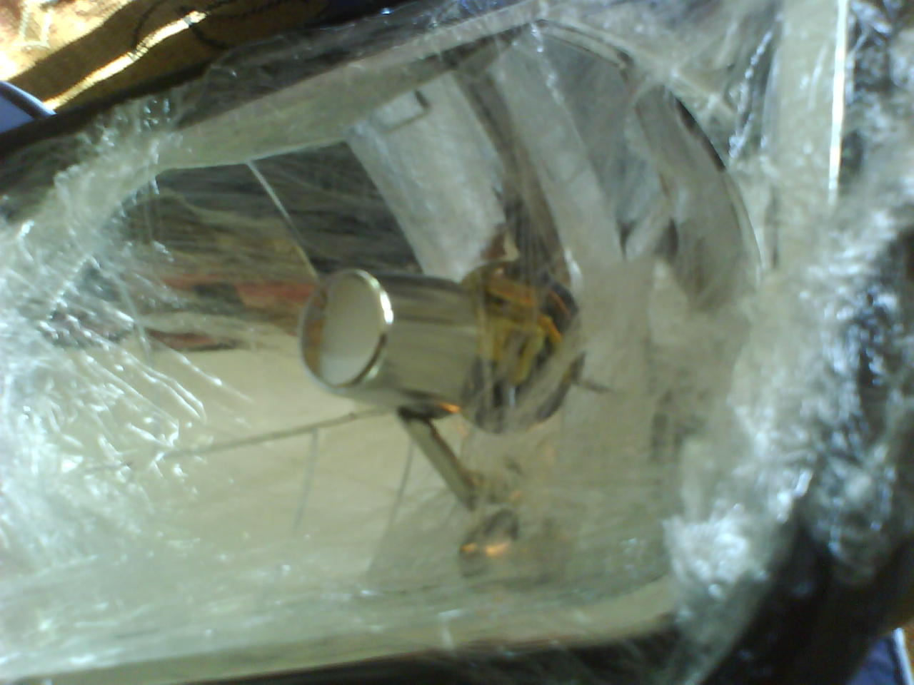 Съвет: преди да почнете да почиствате от силикон, сложете онова фолио, в което е бил увит фара (не това от прозрачната част) по самия рефлектор, подпъхнете го около улея. Така би трябвало да предпазите рефлектора от мазнотии и драскотини. И още нещо - гледайте някак си да увиете фолиото около пластината, която стои пред крушката: