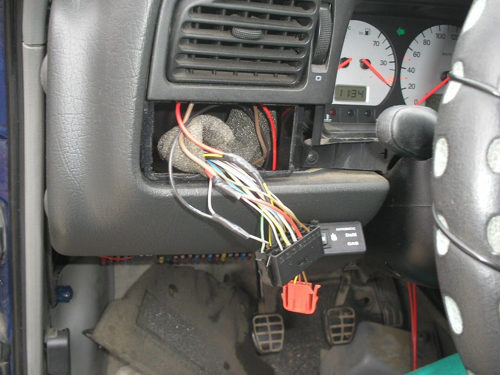и към превключвателя подвързване на обща обувка онова кафявото "стърчащо" кабелче. Тази обувка вкарваме на клема 30 на релето. Другия край на срязания кабел, който отива към предпазителите подвързваме на обща обувка с жълто/зеления кабел от ДРЛ-а. Тази обувка забождаме на клема 87 на релето.