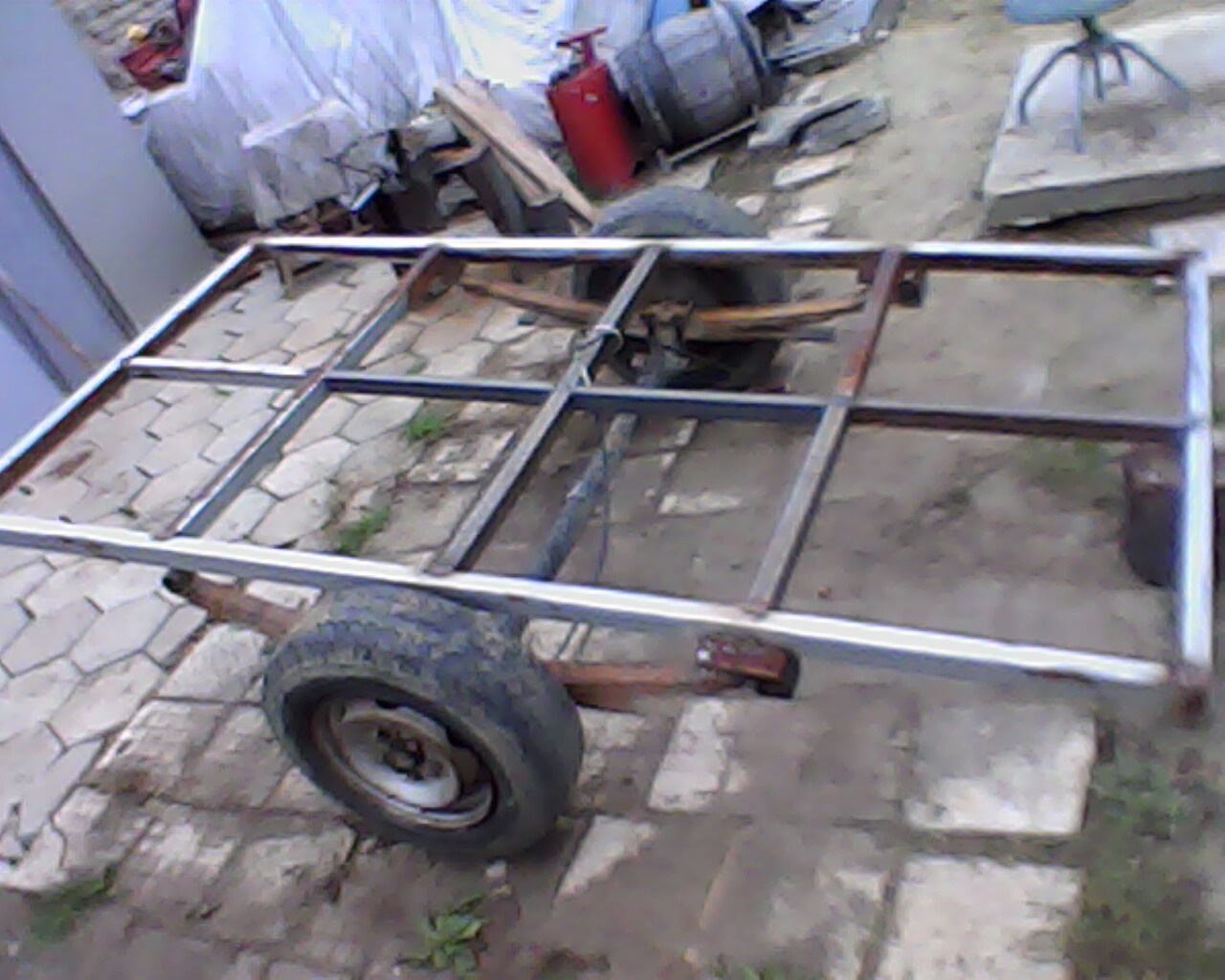 От две-три години събирам, идеи и части и матрял за направата на самоделно ремарке. Разгледах и много такива купешко производство, но все нещо не ми харесваше, или цената беше прекалено убавъ. Това, което искам да направя е ремарке със спирачни, самосвално, до 1000кг. полезен товар. Точно тези три неща в едно ремарке, трудно се намират, или са на непоносима цена. Регистрацията е отделен проблем, който ще се решава по-нататък. Работата върви бавно, но за сметка на това стабилно.