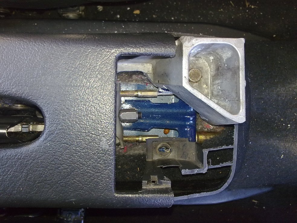 Основата на самия подлакътник разпробих за да може да покрие главата на болта намиращ се в стойката,монтиран така не мърда и се клещи сам