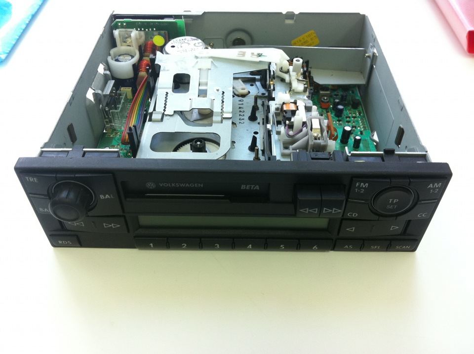 Първо сваляте радиото,като е важно да го вадите при върнат контакт,иначе май ще ви иска код после.После сваляте двете ламарини отгоре и отдолу.Ако искате да ви е по-лесно свалете и модула за касетката,който се държи на 4 болта.