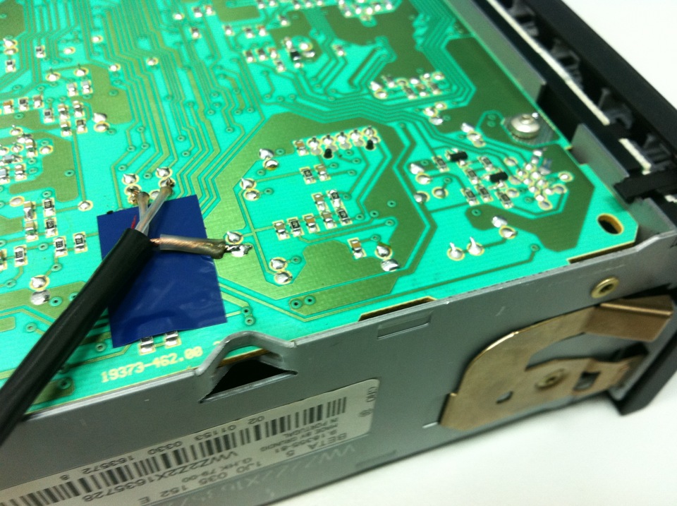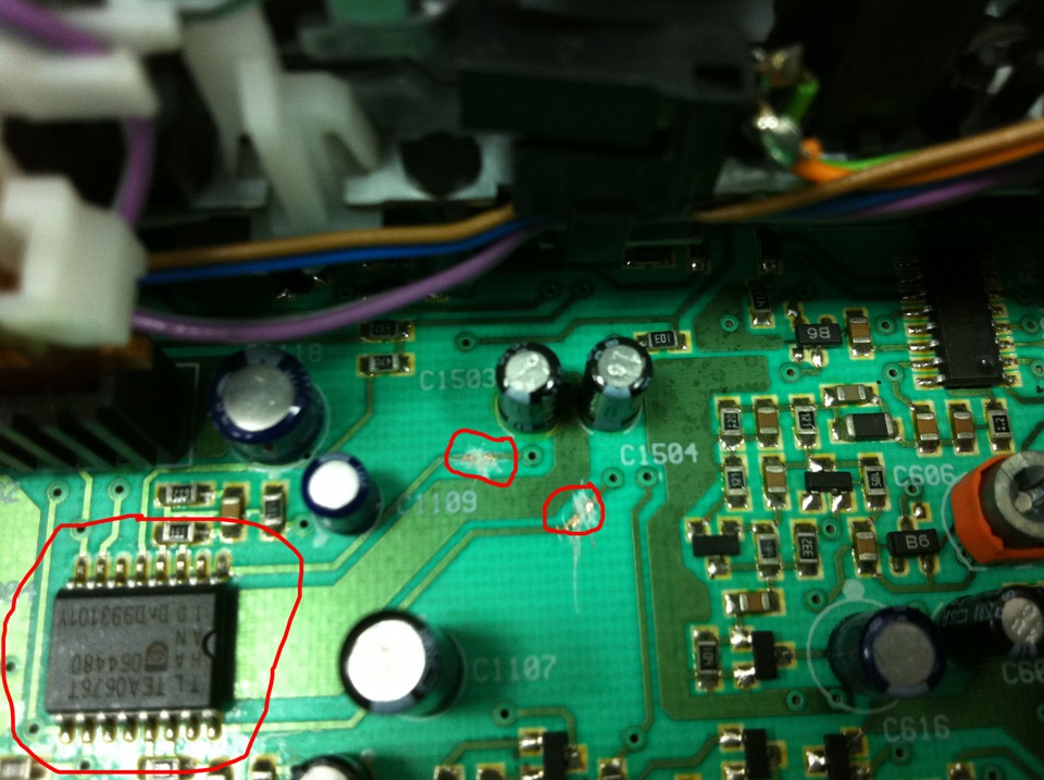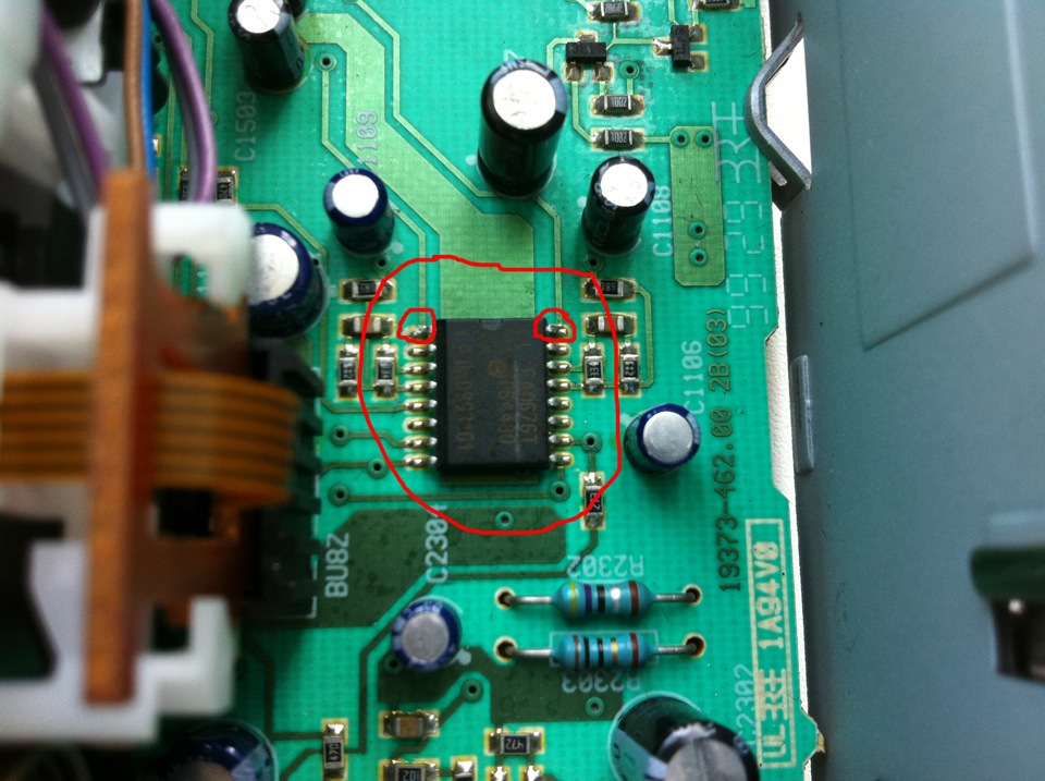 Проследявате пистите,които тръгват от чипа и отиват към кондензаторите(крачета 1 и 16 на чипа и ги прекъсвате с макетния нож(или с каквото можете). Така ще шунтирате сигнала от касетата.
