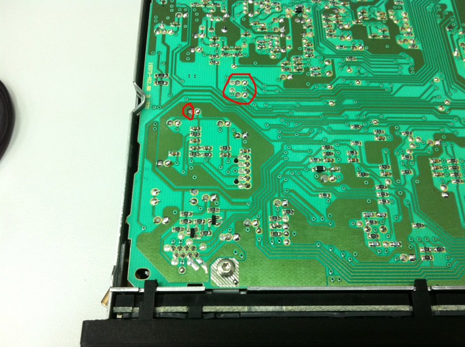После обръщате радиото и търсите мястото отдолу,което отговаря на мястото с двата кондензатора отгоре.