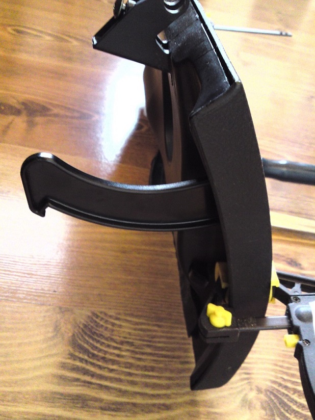 Исползвах черен силикон за стъкла и дърводелски стяги за притискане докато стегне.
