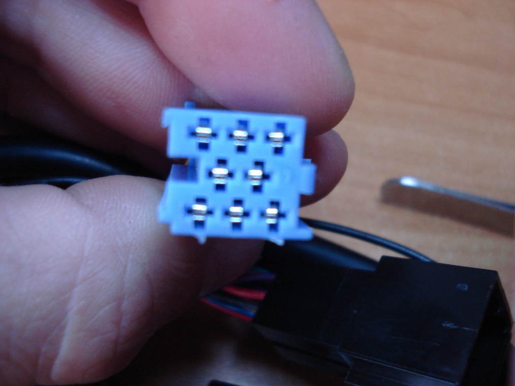 Вземате си от морга една синя букса и си пренареждате кабелите!Например от 12-пина за vw към синя букса (8 пинова + кабел за маса).