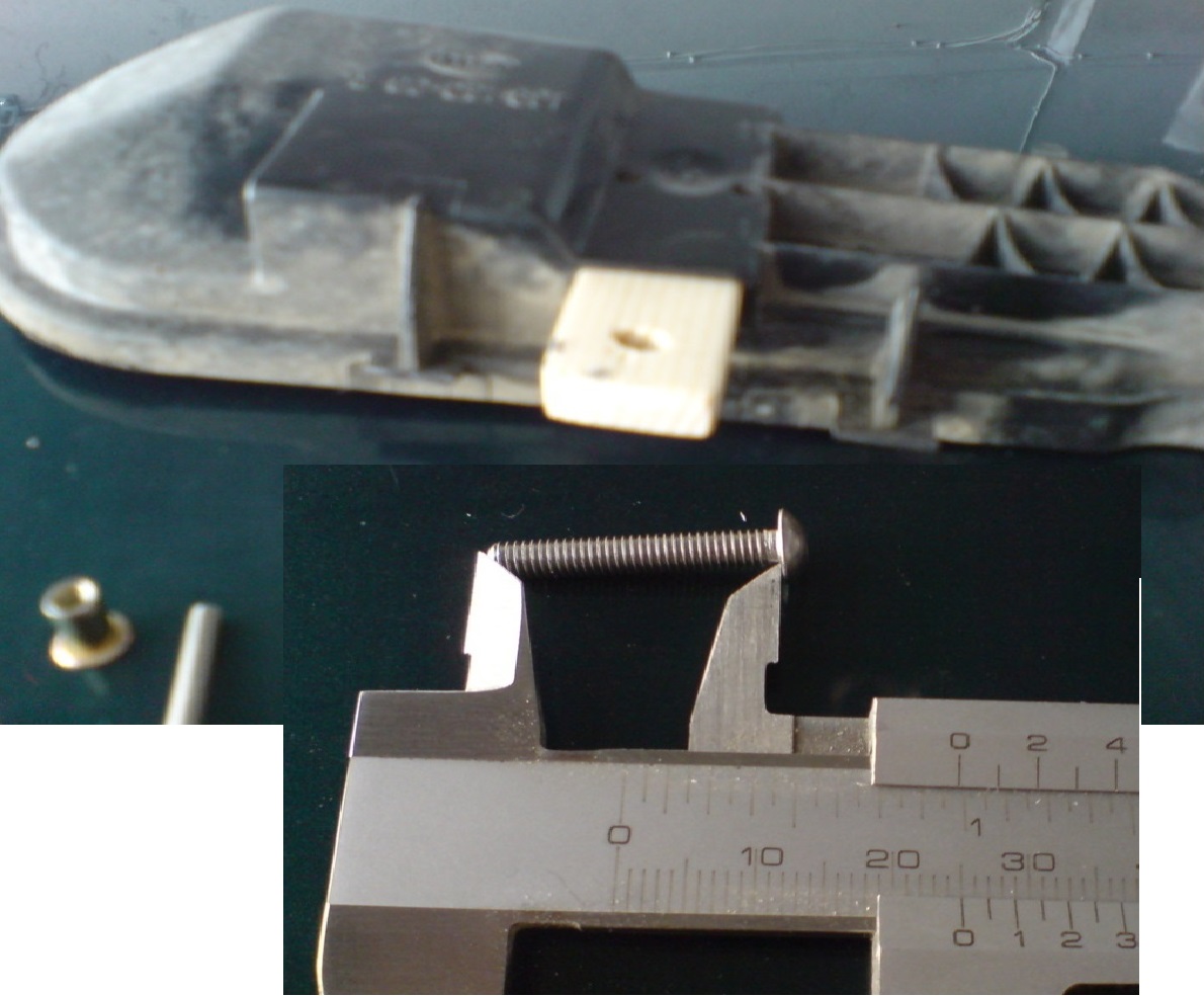 Пробива се отвора в трупчето със свредло. Почиства се фара между щипките със шкурка за да хване лепилото. Постава се трупчето в отвора на капачката и винта в отвора на трупчето,завива се нит гайката на винта и с маркера бележите позицията на нит гайката върху фара там където да мажете с лепилото. Поставяте лепилото, притискате гайката колкото е необходимо за да стегне (10 мин е с това лепило , като максималната якост е след 24 часа). Завивате винта ,като се стяга разумно!