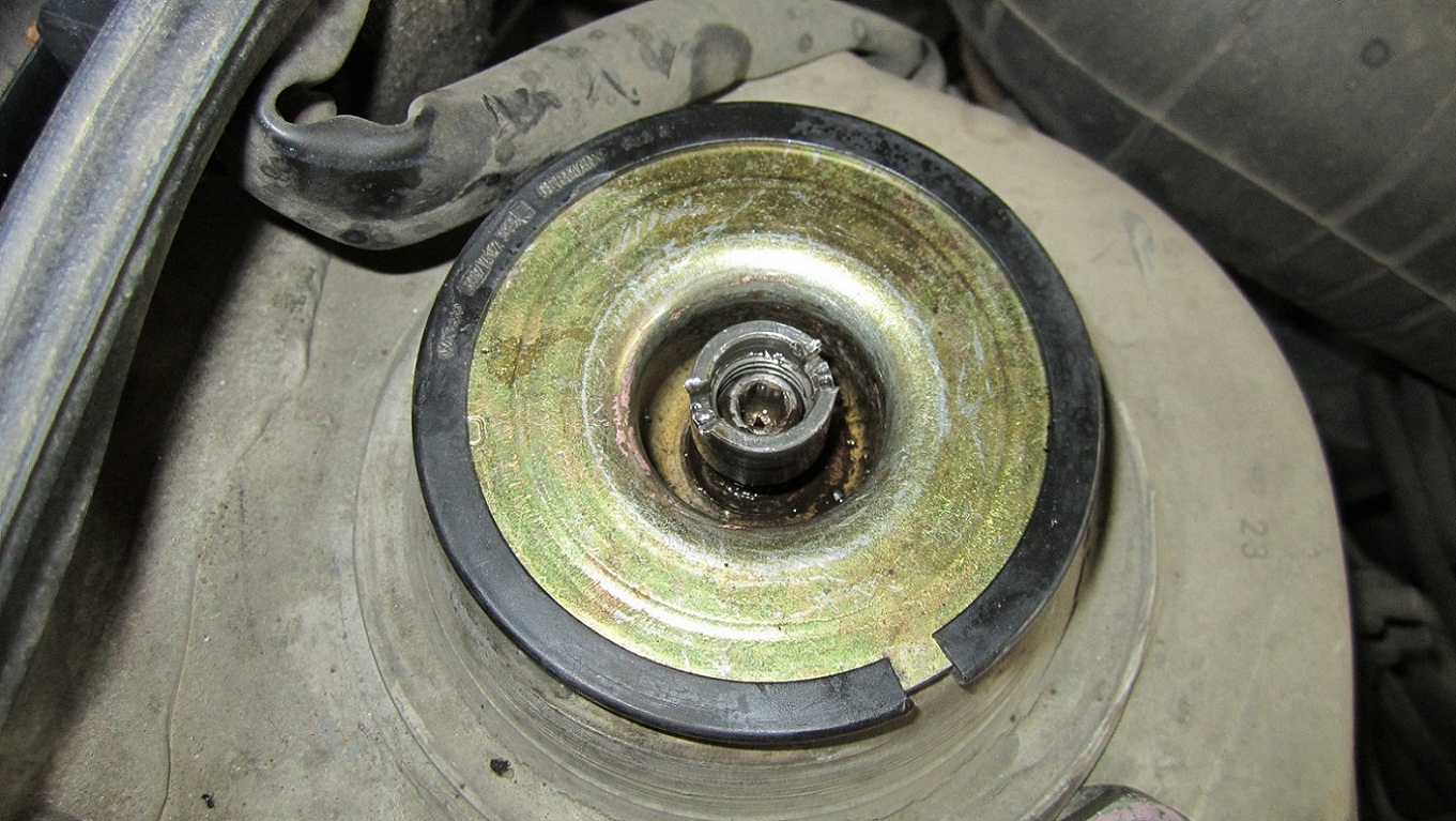 като се развие гайката, се сваля капачката и вече се вижда тампона на макферсона