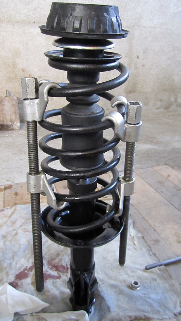 Между другото сега като напънах отдолу с хидравличния крик, пружината толкова се сви, че може да се изкара стария тампон и да се подпъхне новия. Не съм го пробвал, но ми изглеждаше като да стане, товава може да се мине със още по-малко разглабяне