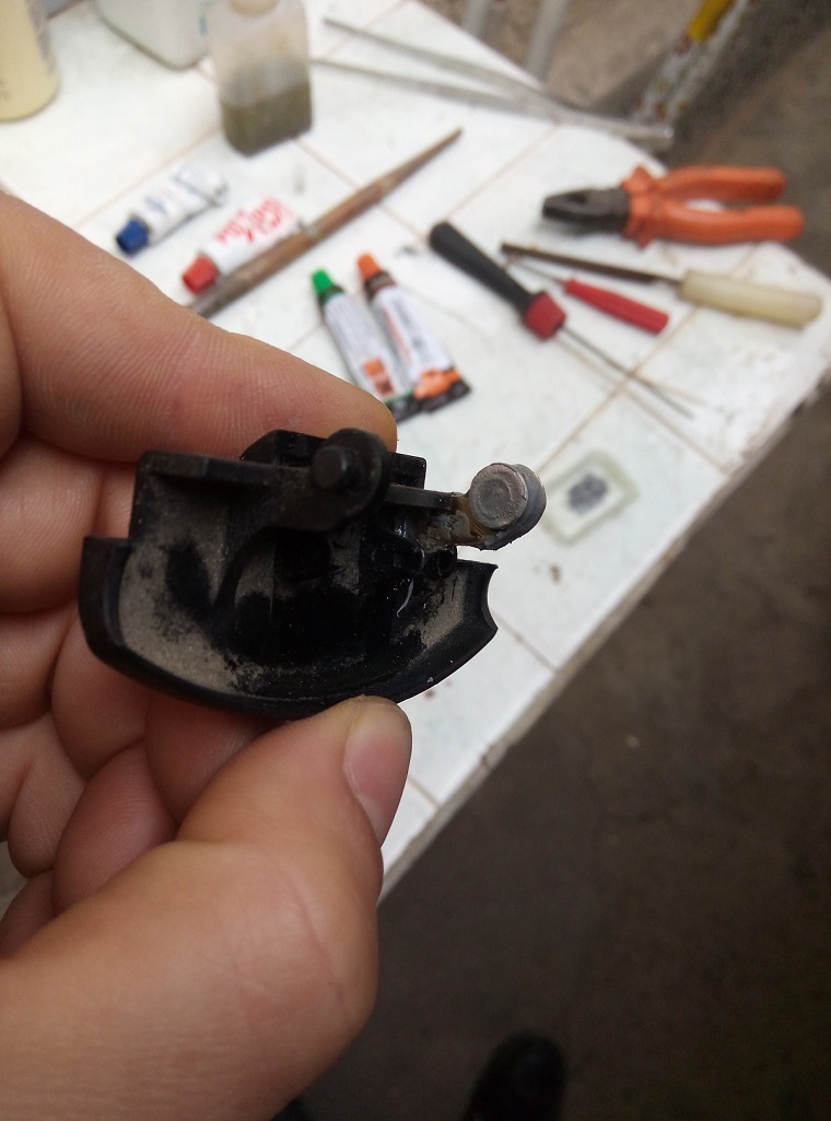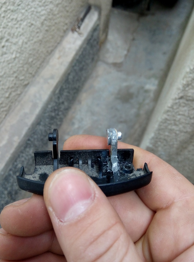 Здравеите колеги .Аз също си ремонтирах копчето но по друг начин.Понеже имам достъп до струг ,струговах малкото колелце с двата диаметъра. След напасване с другото в една линия го залепих с моментно лепило и заспа.