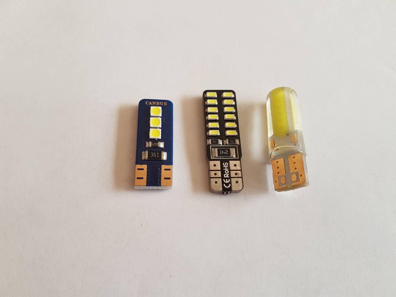 от тази тема и с разрешението на колегата FEN_NA_TDI да ползвам снимките ми лъсна една идея. Как да си направим CANBUS за всякакви лед лампи. На снимките се вижда че има резистори да се лъжат компютрите при проверка на лампите. Ясно се вижда че резистора е от 240 Ом до 360 Ом по сметки 1 ват ще стигне. Свързан е паралелно на лампата, като на едната снимка най в дясно лампата няма CANBUS, но има къде да се постави.
