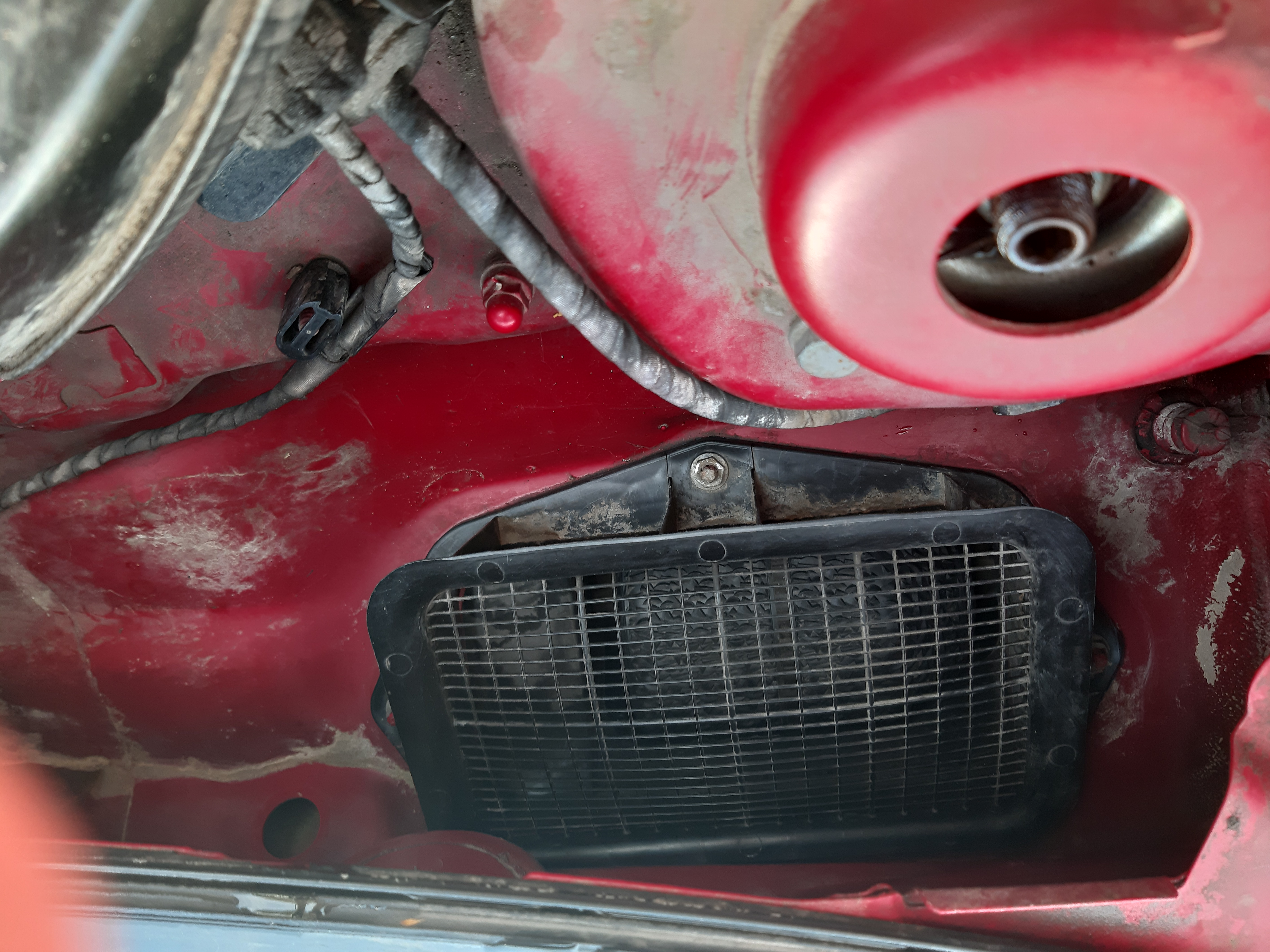 Мислех, че съм решил проблема, но не.Тази пролет направо имаше локва на същото място.Пак махнах мокета и поливане с маркуча.Влизаше вода изпод таблото.Пак при стъкларя и той се съгласи отново да го лепи за негова сметка-всеки греши!Реших все пак да силиконирам всички възможни места откъм двигателния сектор, като сложих и мрежа на въздуховода към купето.
