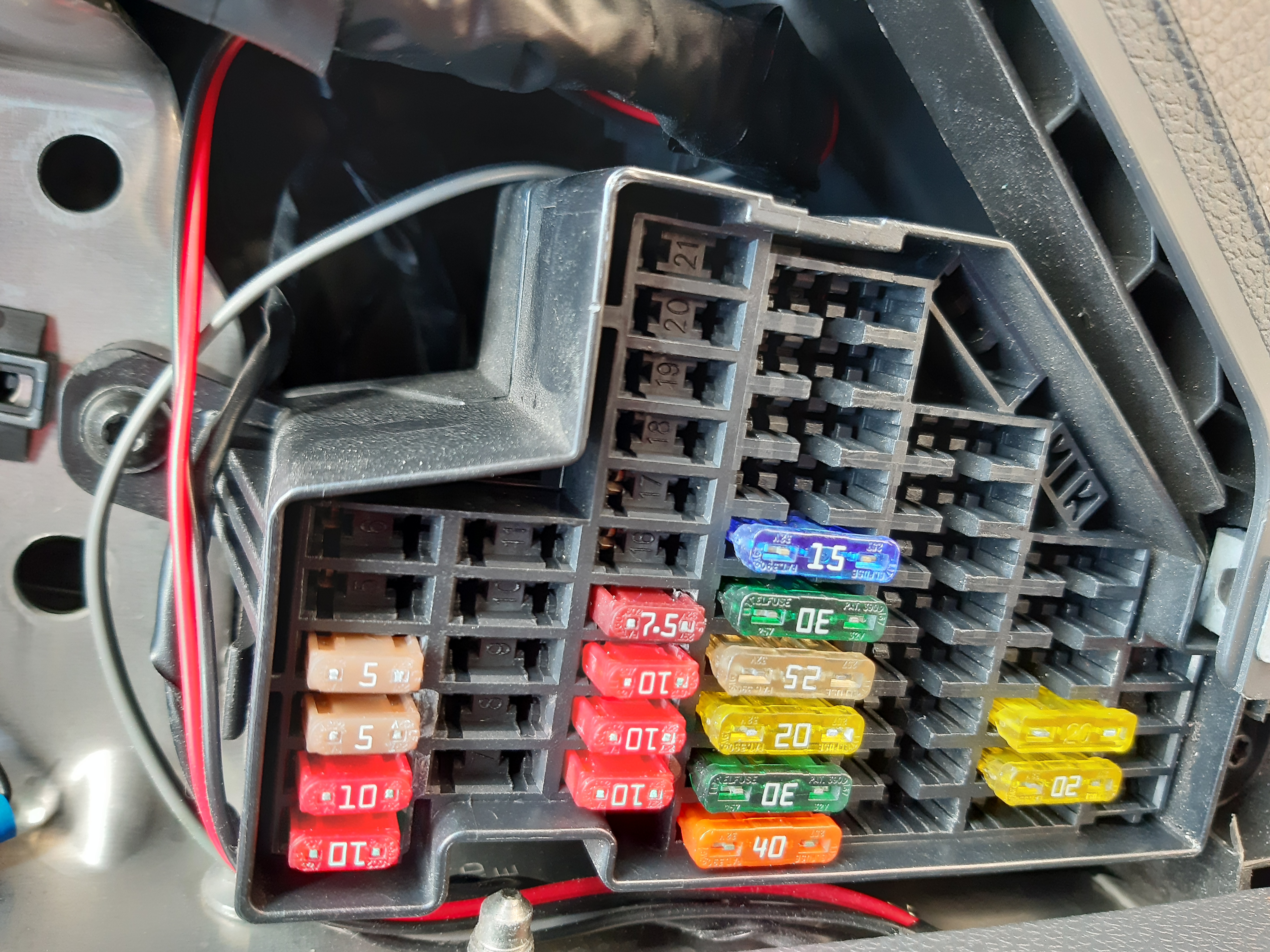 Здравейте! Може ли да ме насочите/покажете от къде да хвана постоянен плюс от кутията с предпазители в купето?Как да открия кой кабел е захранващия?Чувал съм за захранване от запалката на колата но , мисля че , от кутията е по-добре!Изпращам Ви снимка на кутията ми с предпазителите!