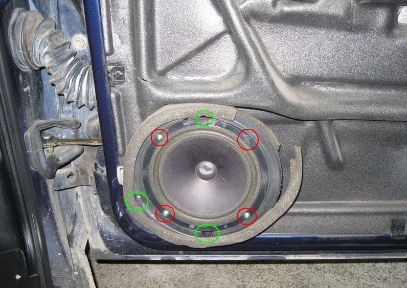 Сваляме колоната от вратата. Първо се развиват 4-те винтчета с кръстата отверка които съм оградил с червено и след това оградените във зелено 3 кръстати винтчета. Но като се замисля може и директно да се развият 3-те винтечта оградени в зелено (аз съм си ги разглобил всичките поотделно)