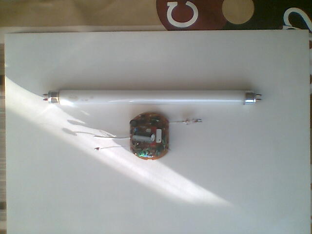 Пояснение: платката е от енергоспестяваща крушка 20w-лумифицентната лампа която искам да захраня е 6W.