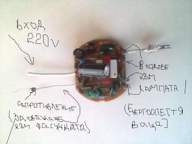 Сега намерих мнението на колегата и видях, че съм се подвел нещо - верно е че пише, че можe с платка от енергоспестяваща крушка, но не съм обърнал внимание на малката, но важна подробност, че отново ще е на 220 волта ,така че темата може да се счита за