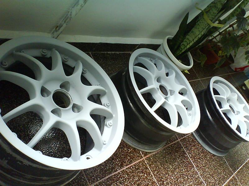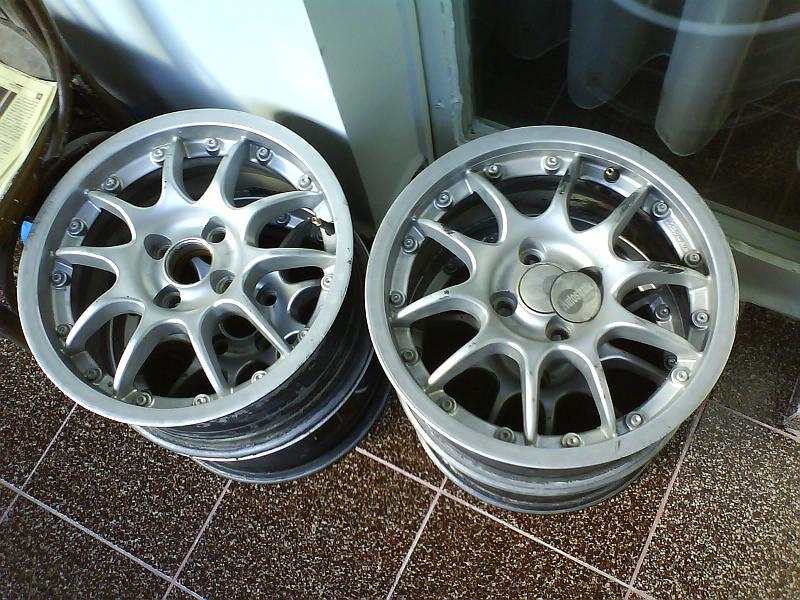 5.След като зафиних се оказа,че шприца неможе да покрие малко по-едрите неравности и купих авто кит(те бяха мн малко).Зашлайфах и станаха супер(е,останаха неравноси,но ще видите,че джантите,с които се захванах са изклучително трудни за обработка,има гадни болтове дето ти пречат)!