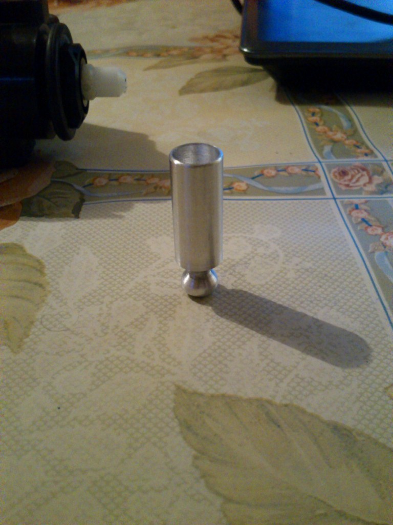 Счупи ми се ябълката на машинката и рефлектора кльопна да свети на един метър пред колата. Свалих машинката взех размери и на струга за 10-15 минути направих ето това. След което с подходящо термо лепило може да се залепи или просто отвора Ф8.5 се прави по-тесен и се набива новата ябълка на оста на машинката. Или ако не желаете да го лепите просто с резачките на клещите прищипете втулката към оста. Стената е тънка и се мачка лесно. Аз така направих и нямам никакви проблеми. Ябълката е изработена от алуминии. Прилагам и една рисунка на размерите които съм свалил и са в +/– десета две :)