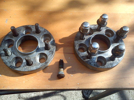 3.Набиване на подходящи шпилки-в моя случай,оригинални от някакъв джип-12мм.х 1,5.Съотвено после ще се стягат с гайките за тези болтове.