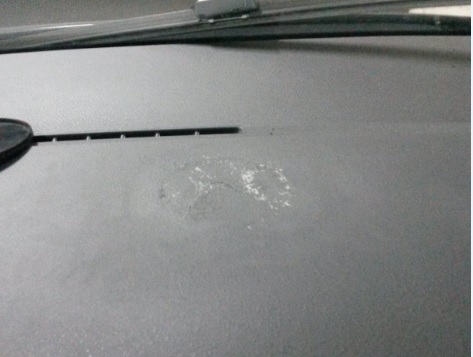 Когато взех автомобила тази странна поставка за не знам какво беше там и реших да я махна. Използвах кореселин от магазина за левче. Търках само с парцал, но явно лепилото е било доста здраво и е обелило таблото. Снимката на която ми се вижда телефона е правена през предния прозорец на колата - забелязва се че е обелено. Ако има някакво значение колата е Polo 1.2i 2007. Моля ви за помощ и идеи.
