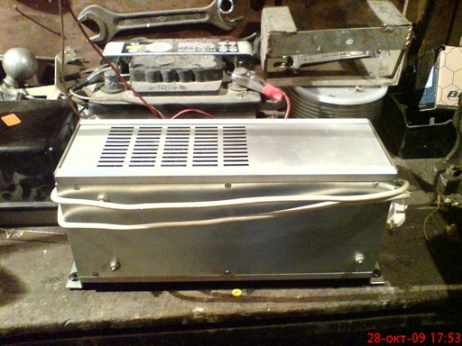 Токоизправителят е 24в. -2.5 А. Когато го включих към акумулатора, контролната му лампа намали светлината си, а трафът забръмча !