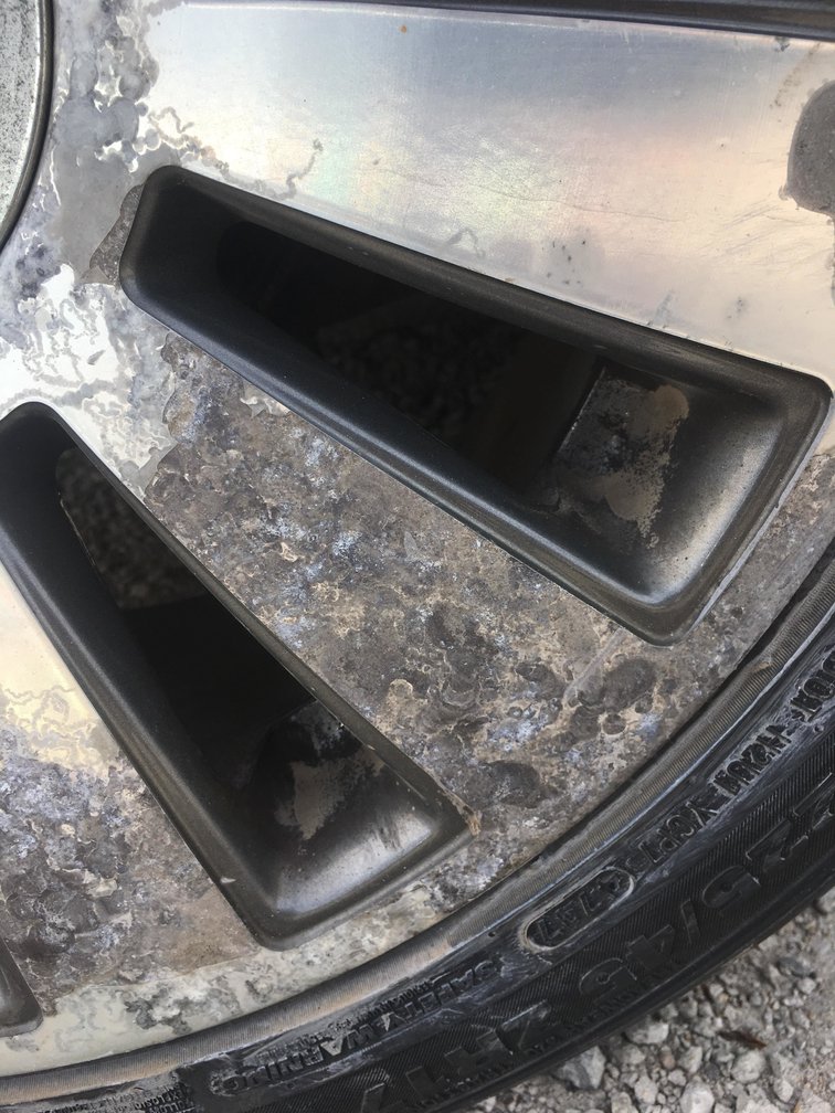 Това е яко корозирало от долу и язвите ще са дълбоки.За целта ти е нужна гумена шайба за бормашина и едра шкурка 60-80 някъде.Но трябва да минеш всичките лъчи,понеже ще стане не равномерно.Все едно минаваш джантите на фреза.Така съм правил зверски надрани от бордюри джанти и след минаването им с по-ситни шкурки се получиха много добре.