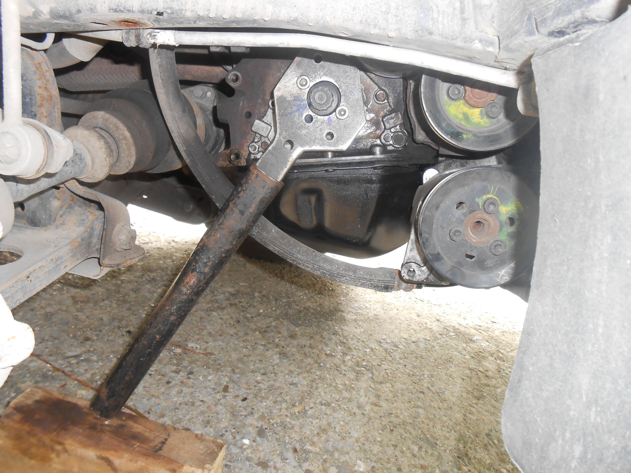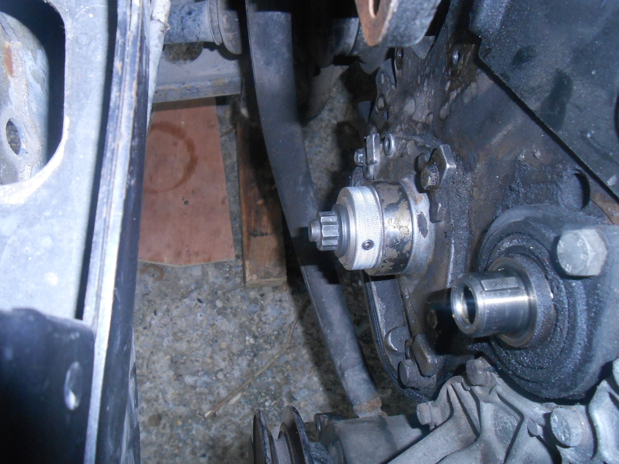Тогава през ноември смених колелото, но поради доста повреденото чело на вала, и липсата на опит и подготовка, остана доста биене в този възел, което биене се предаваше по ремъците на останалите агрегати и в резултат обтягащите ролки подскачаха непрекъснато. Реших да сменя колелото отново, като този път пригладя челото на вала тага че да елиминирам биенето.