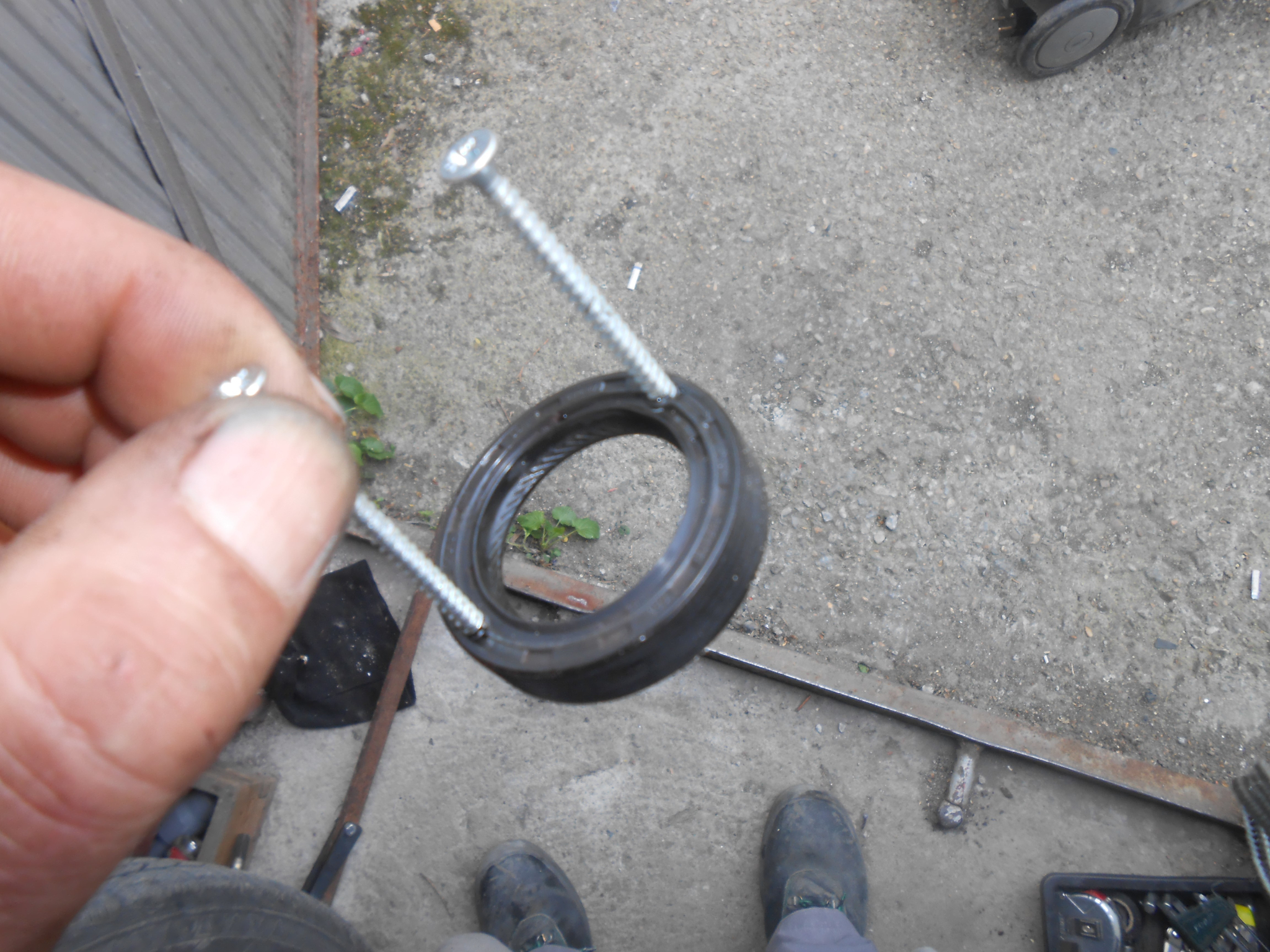 После донабиваме семеринга с помощта на подходящи втулки и централния болт:
