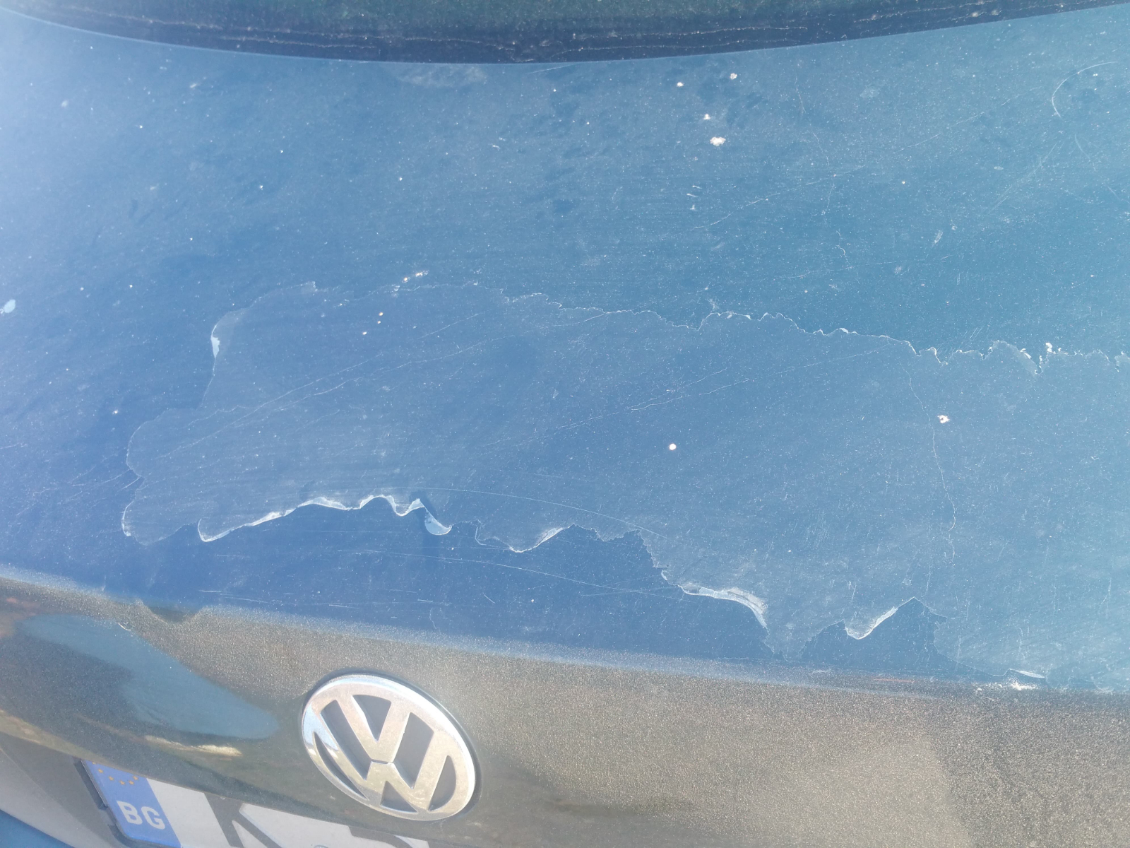 Здравеите.Това стана на капака на багажника на пасата.От една малка точка се превърна в това.Как може да се поправи.