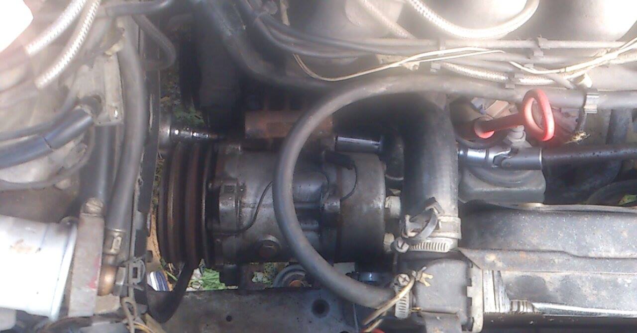 Засега е монтиран само компресора със един ремък от коляновия вал през водната помпа и генератора.