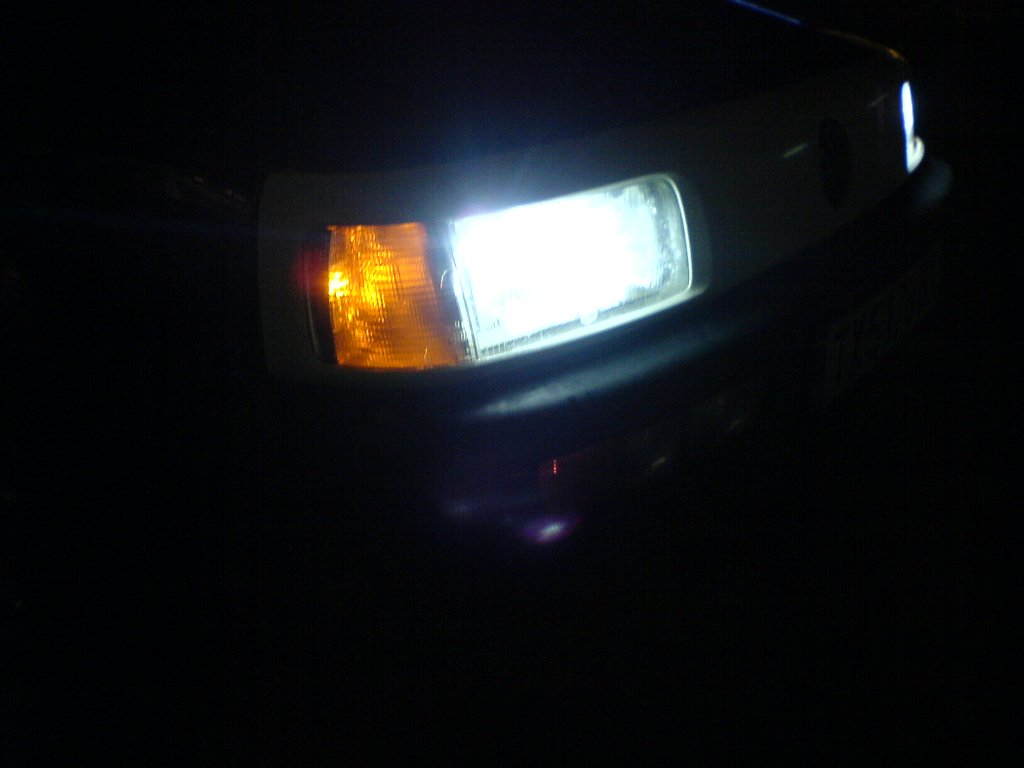 Само, че колата е В3 с предна броня от В4 - мигачите които са до фаровете станаха на габарити, а мигачите в бронята на В4, всъщност тях ползвам за мигачи