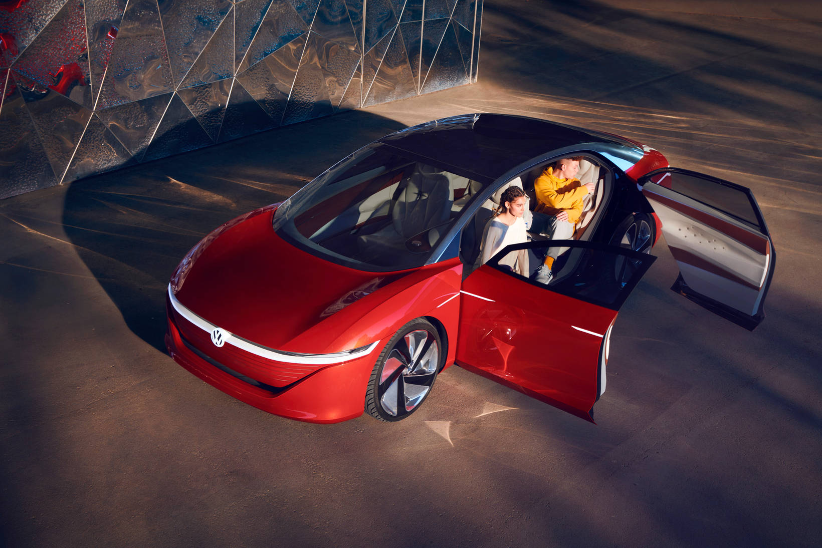 Премиум седан с прогресивен дизайн, интелигентна концепция на вътрешното пространство и новаторски технологии. Електрическите двигатели на предния и задния мост изграждат система за задвижване на четирите колела и гарантират постигане на извънредно динамично ускорение. Мощната литиево-йонна батерия, вградена в пода на каросерията, е достатъчна за изминаване на до 665 километра с едно зареждане. Вратите на ID. Vizzion се отварят в противоположни посоки, осигурявайки лесен достъп до изцяло новия интериор. Единственото нещо, от което трябва да се откажете, е воланът. Всички контролни прибори са виртуални и се проектират във вътрешността със средствата на разширената реалност, а единственият начин да ги видите е с очила за смесена реалност. Взаимодействието ви с автомобила е напълно интуитивно, което го прави изключително лесно. ID. Vizzion разпознава вашите жестове и чува вашите команди. С течение на времето автомобилът може дори да се самообучава, адаптирайки се към вашия стил.