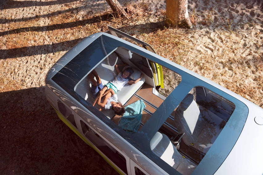Електрическият ван е опит за истинско завръщане в бъдещето на емблематичния кемпер микробус на Volkswagen. ID. Buzz е изключително лесен за управление, защото всичко е фокусирано върху водача и позволява интуитивно управление. На арматурното табло няма бутони и превключватели, а благодарение на сензорния панел на волана, едно просто докосване е достатъчно за управление на неговите функции. Само докоснете волана и сте готови за следващото приключение. Вместо да използва класическите кръгли фарове, ID. Buzz се отличава с интелигентни LED очи, които общуват интерактивно с другите водачи и с пешеходците. Когато искате да завиете например, предните светлини ще се насочат в посоката, в която поемате. А ако ID. Buzz забележи пешеходци или велосипедисти да се движат близо до банкета на пътя, той може да ги "погледне" и да използва леки светлинни сигнали, за да привлече вниманието им. Volkswagen ID. Buzz е приятел на цялото семейство. И спътник, на който можете да разчитате в стресиращото ежедневие. В края на краищата, електрическият модел е оборудван с всичко необходимо, за да направи живота ви по-лек и приятен - комфортни възможности от последно поколение, най-новото в областта на интериорния дизайн, както и възможност за напълно автоматизирано управление в недалечно бъдеще.