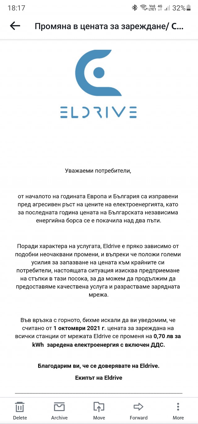 От 1.10.2021 цената от 48 ст. се покачва на 70 ст. на станциите на Елдрайв