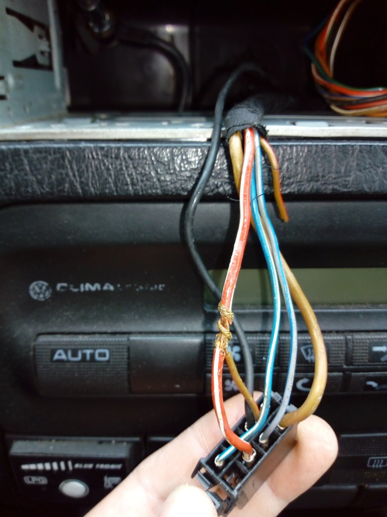 ето го куплунга..не знам изобщо дали отговарят цветовете...това е афтърмаркет с изолирбанд...изгорих бушона на плеъра от проби и рязане на жици...