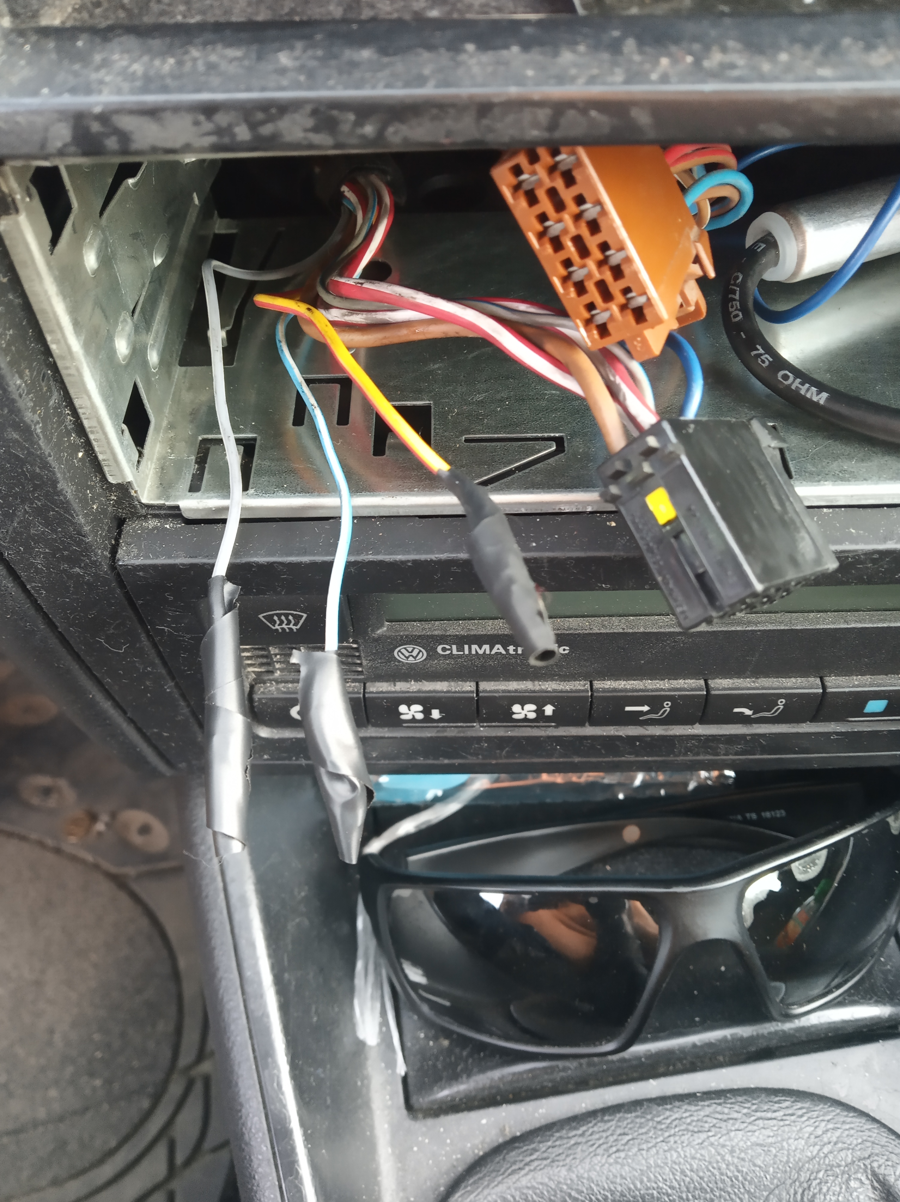 Колеги здравейте. Купих си една китайска мултимедия,дори няма определена марка. Купих и рамка за регистрационен номер с камера за задно виждане. Мислех да ги поръчам от алиекспрес но ги намерих и в ОЛХ. Та,от колеги които са слагали мултимедии с камери(не точно на голф 4 а на други коли),съм чувал че на мултимедията отива някакъв кабел наречен реверс който казва на мултимедията че е включена задната предавка и мултимедията да превключи в режим камера. Въпроса ми е на голф 4 кой от кабелите които излизат от колата е въпросния реверс,или на голф 4 няма такъв кабел и трябва да си го пусна отнякъде. В момента имам 3 свободни кабела зад радиото,на единия който е по-дебел щом дам контакт постоянно имам напрежение независимо на каква предавка съм,на другите два нямам напрежение. И оттам заключвавам че нямам реверс и трябва отделно да го пускам. Прав ли съм или просто не го намирам? Прилагам снимка на трите свободни кабела.