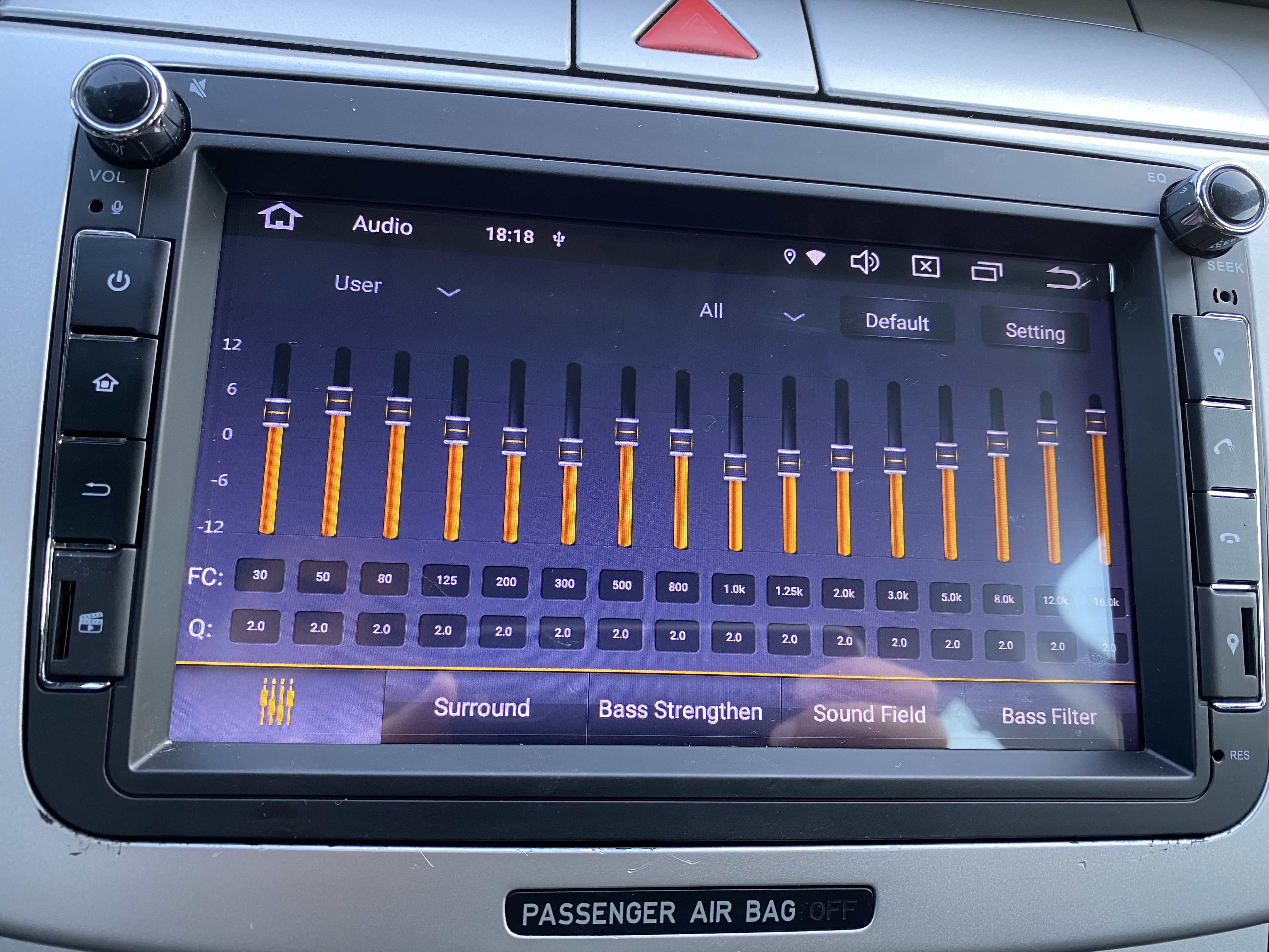 Като функции новата мултимедия е страхотна, но не мога да си настроя звука, да е както оригиналната. Като започне текста на песента, въпреки че музиката е силна, текста на песента се чува по-глухо и басът не е същия както преди. Има допълнителни настройки за съраунд и сила на бас и тн. Прикачам снимка на еквалайзера, моля ако някой ползва същата да ми покаже настройките си или да обясни какво да направя, за да си върна оригиналното звучене.