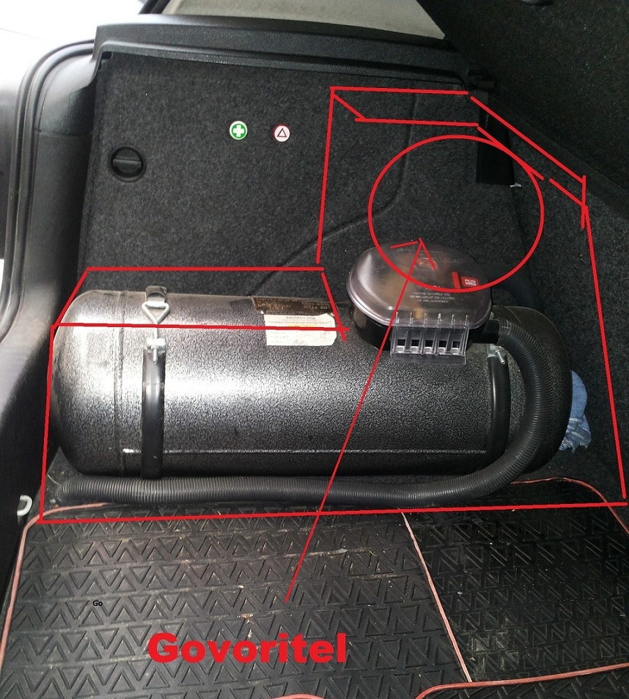 Помислих за това място, но го използвам за аптечка, пожарогасител, триъгълник жилетка и т.н., а и целта ми е да скрия бутилката. А ще ми трябва ли усилвател или направо към СД-то?