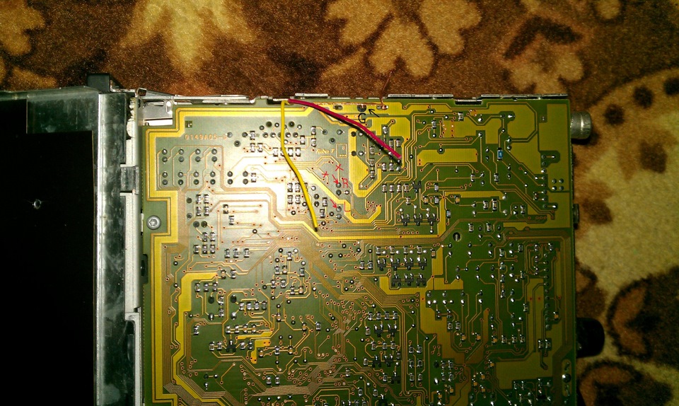 За да не ръчкам никакви касетки вътре му намерих контакторчето,дето като мушнеш касетката активира от радио да мине на tape.Запоих му две жички и с копче си пусках режима AUX (tape)когато исках да слушам от мп3-ката да речем.Иначе целия механизъм го изхвърлих и остана само платката с тунера и усилвателя.