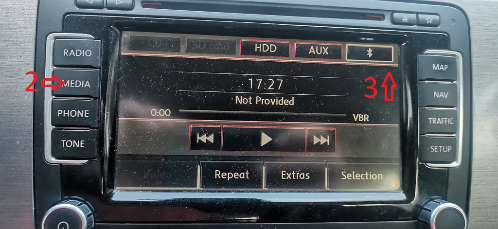 Медията е оригинална(колата я карам от "малка")! Знам, че не визуализира, не искам да визуализира! Да визуализацията си е на телефона, но звук няма нито от колата, нито от телефона!