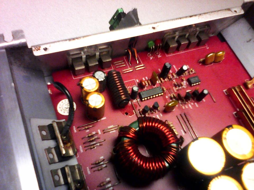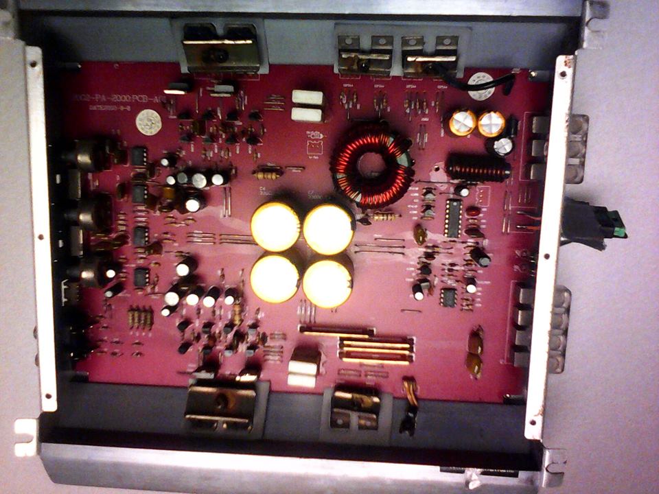Пичове, отворих усилвателя и всичко си изглежда наред, нищо не е разпоявано или заменяно. Не се вижда и да има мост на рем-а към + . Ето няколко снимки, кофти само, че с таблета съм снимал, а той просто толкова си може..