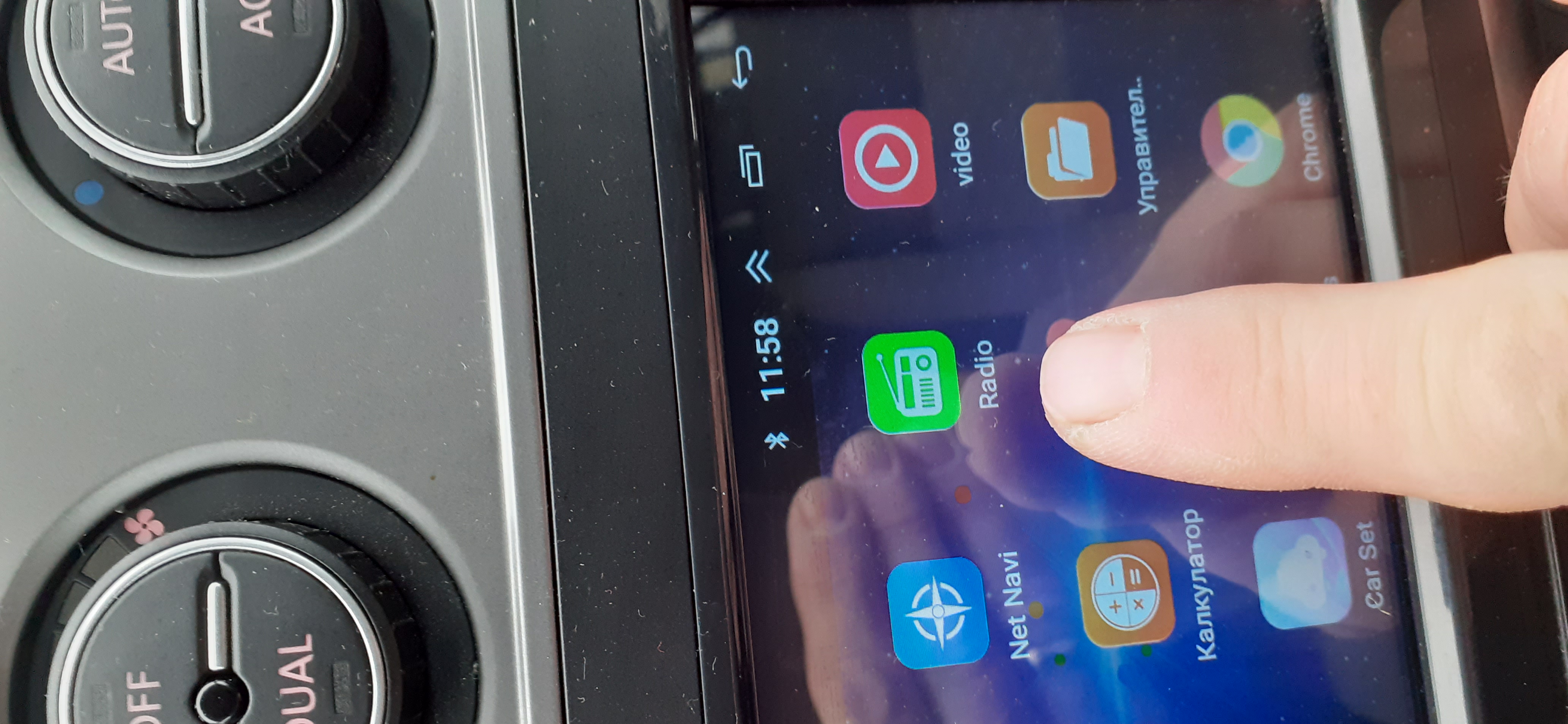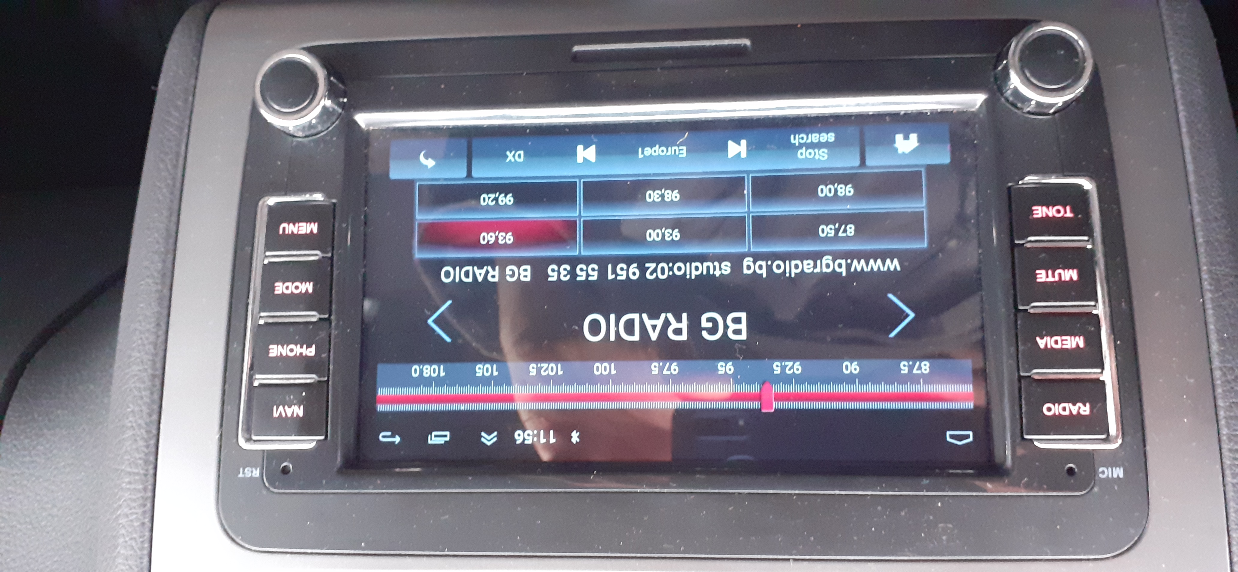 Прикачам три снимки на които се вижда общия вид на мултимедията, как изглежда иконата на приложението и как вероятно е изписано като име в меню за избор. Вероятно точния модел на медията е изписан някъде по задната част и ако е важно ще разглобя и извадя медията за да снимам, но не ми се иска много, защото е студено и пластмасите са трошливи. На снимката се виждат "бутоните " със запаметени станции с изписани честоти, но не и имена или номер поред. Ясно се вижда, че няма опция меню или друга която да дава опции за настройки.