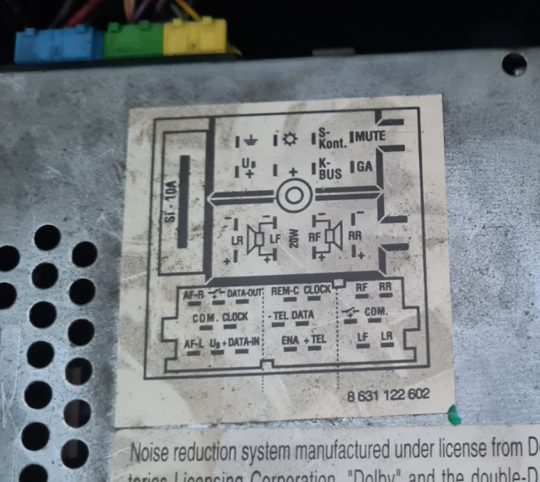 Ето и снимка със схемата на буксите на Gamma 5 радиото. Чудя се дали захранването на платката да не идва директно от пин Ub+, ако това служи за захранването на CD Changer-a.