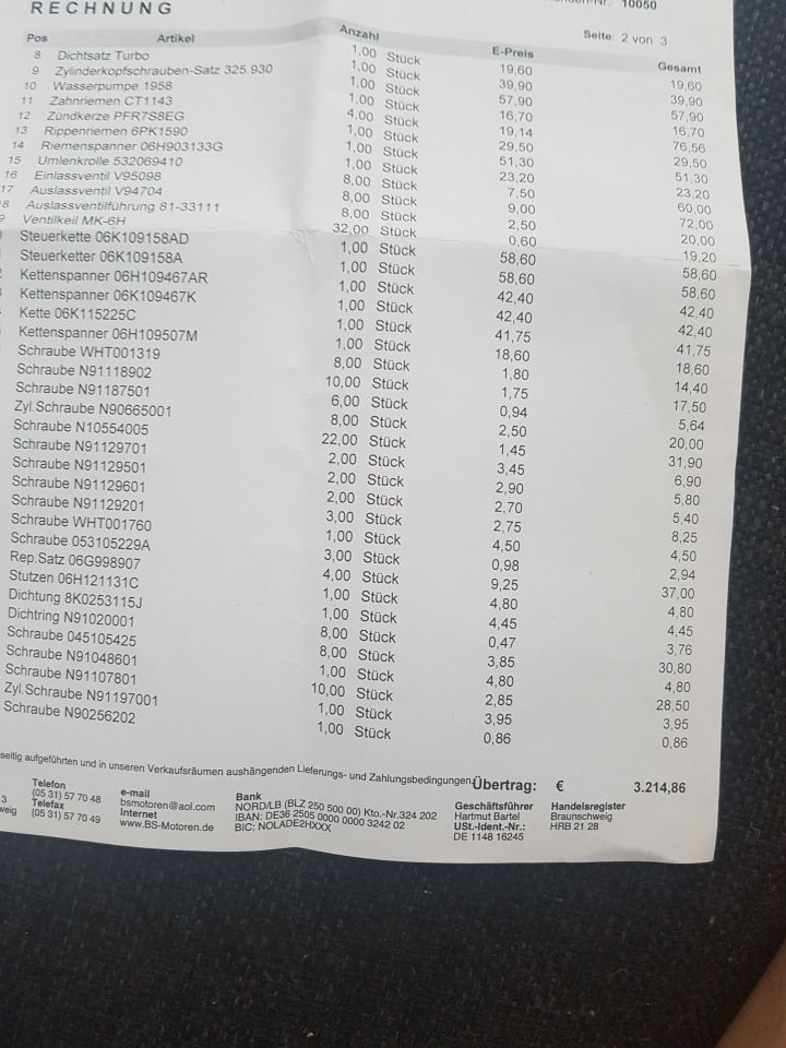 Е тя тая оферта е писана от "бай Пешо". Ето така изглежда оферта/фактура за типичен ремонт на 1.8TFSI & 2.0TFSI: