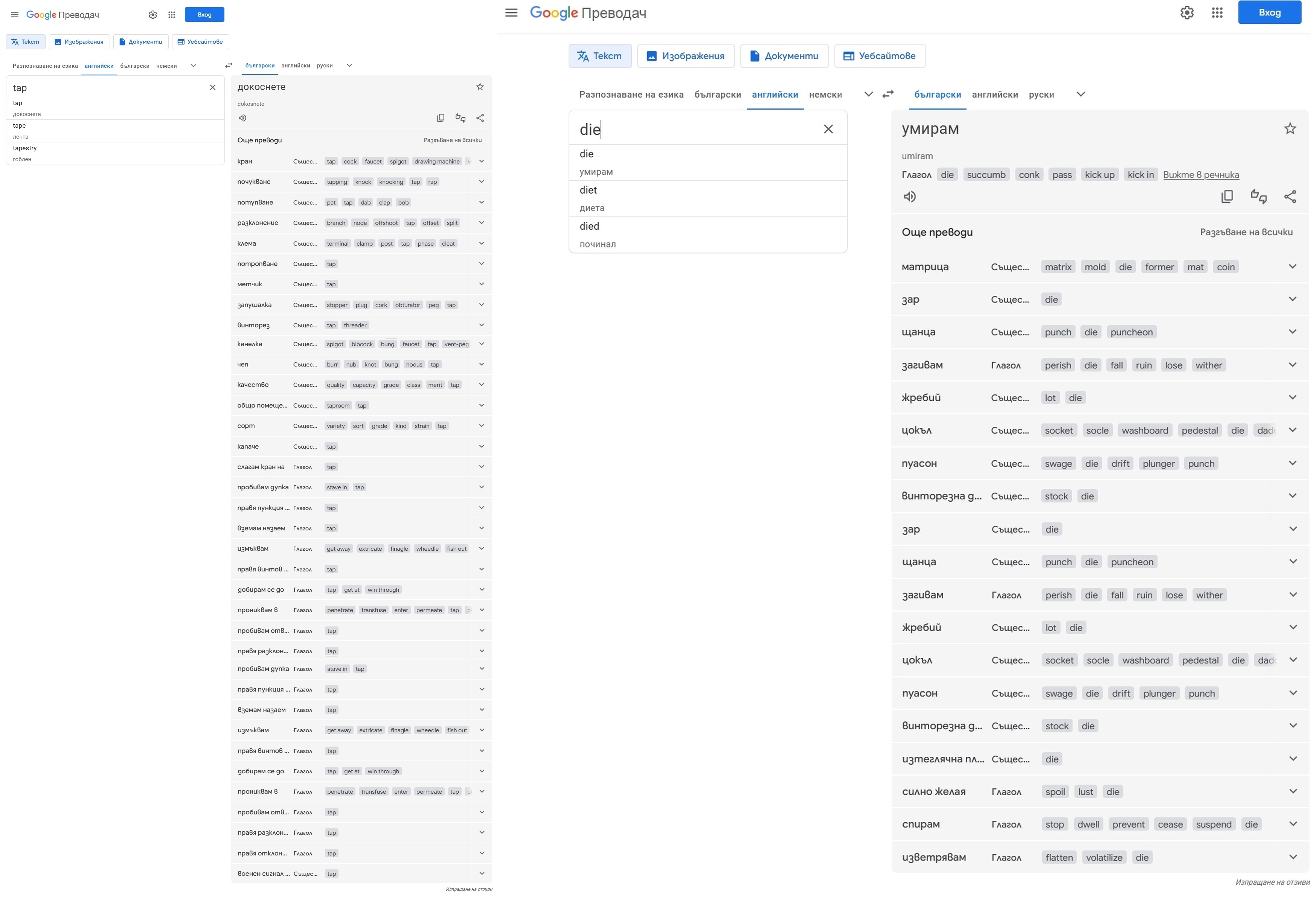 Попитай Гугъл транслейт какво е stock and die.