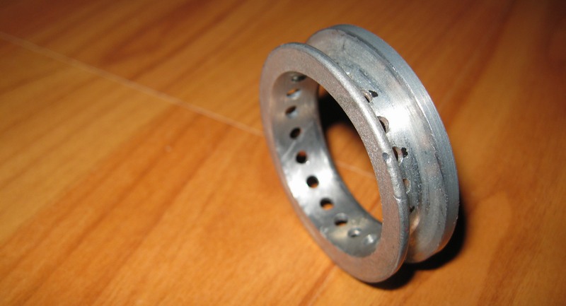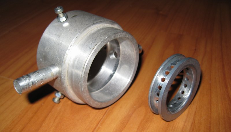-20лв. . Дифузорът му беше 31мм, и по-добре защото си го прешлайфах на 33мм,като изходът на самият дифузор го направих леко под конос, и в тази повърхнина на конуса са разположени дупките за газта. Отитвах се да правя разни сметки по едни формули на който попаднах,и излиза така че в момента дифузора има доста повече дупки за газта. Поне половината ще трябва да ги запуша! Т.е. казват че при смесването стехометричното обемно съотношение на пропан-бутана към въздуха (размера на дифузора към размера на отворите на газта) трябва да се отнасят приблизително- 1:25.