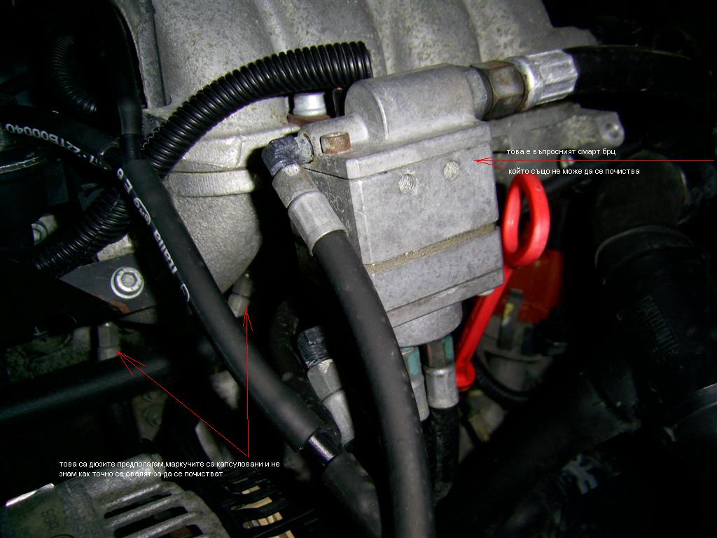 Инжекторите са ти точно в това блокче (дето му викаш смарт), не се чистят, май са капсуловани... ориентировъчна цена за нови - около 500 лв...