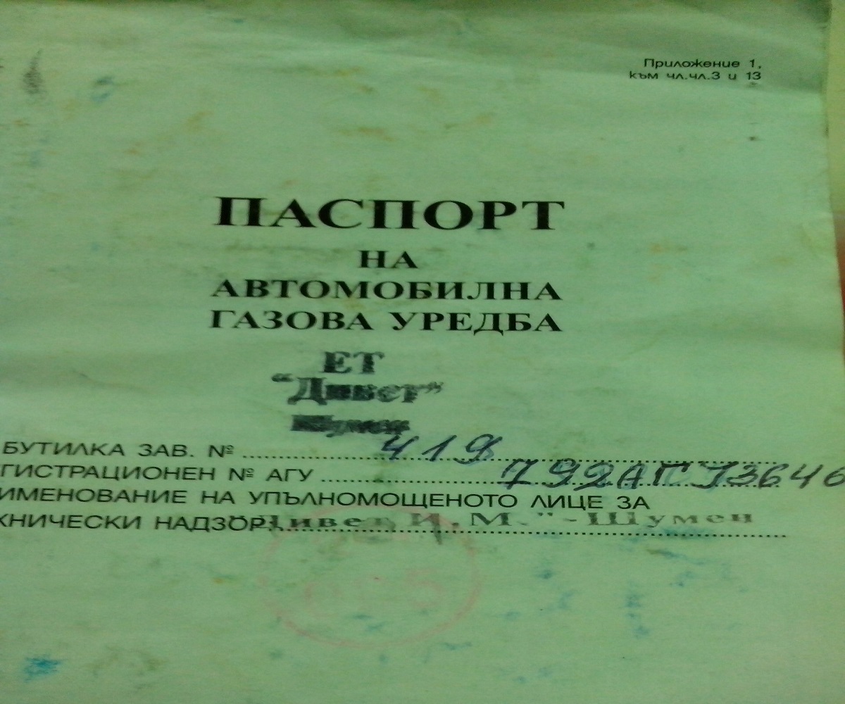 ОК дотук ясно за тези които не им пише в талона Бензин/газ!Отивате и за 20лв. оправяте нещата!Примерно на мойта откакто е регистррана в талона си пише Бензин/газ не "втечнен природен газ" за това ясно а какво става със газовата уредба за нея нямам какъвто и да е документ досега на преглед никога не са ми го искали или при проверка от КАТ и каквото и да било някой ако е по запознат последно какво е прието от закона до днешна дата да сподели!?Ще има ли изисквания и издавания за паспорт за газовата какви са условията и т.н.!